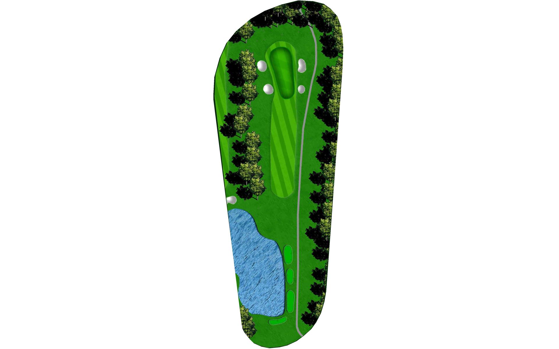 A short par 3 with a very tricky green and water short. You will want an uphill putt; beware of 3-putts and fast downhill putts.