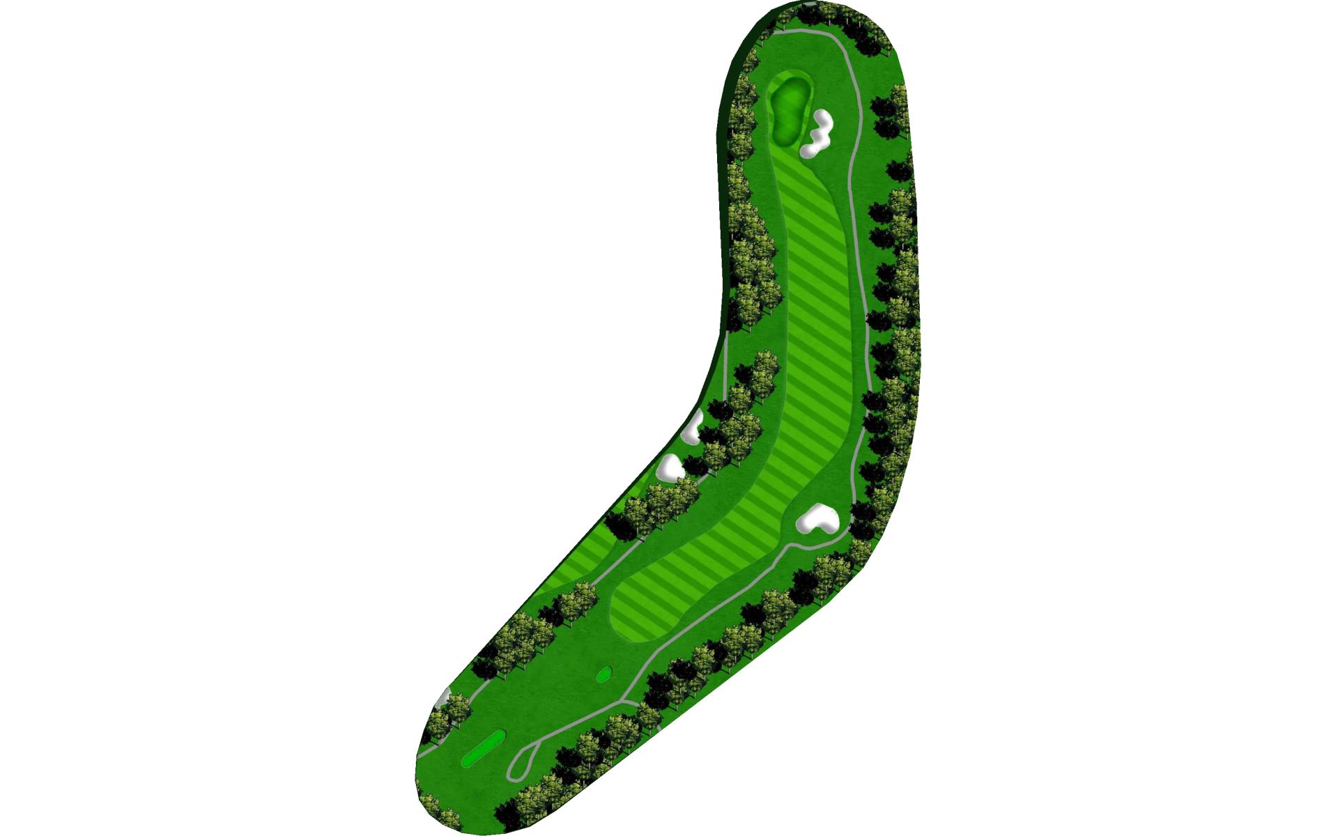 A dogleg left par 5 where a draw is the preferred ball flight on the tee shot. You will not want to miss your approach left of the green as a hill makes it a challenging up and down.