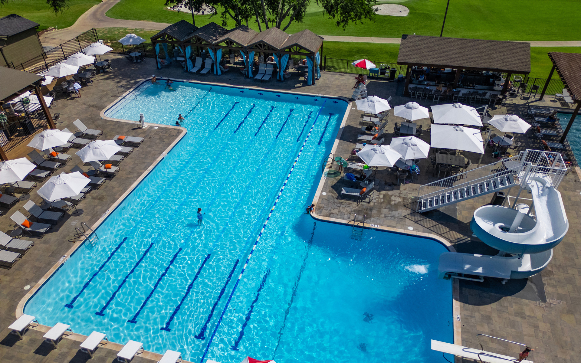 Our newly refreshed pool complex offers something for everyone. Enjoy a leisurely swim in our adults-only oasis, create family memories in our designated area, or train in our Olympic-sized lap pool. For the ultimate poolside experience, reserve one of our luxurious cabanas.