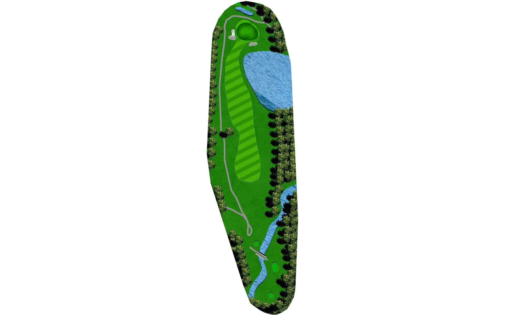 This par 4 is the shortest on the golf course, which provides longer players an opportunity to hit the green in one. The undulated putting surface is protected on the left by a large bunker.
