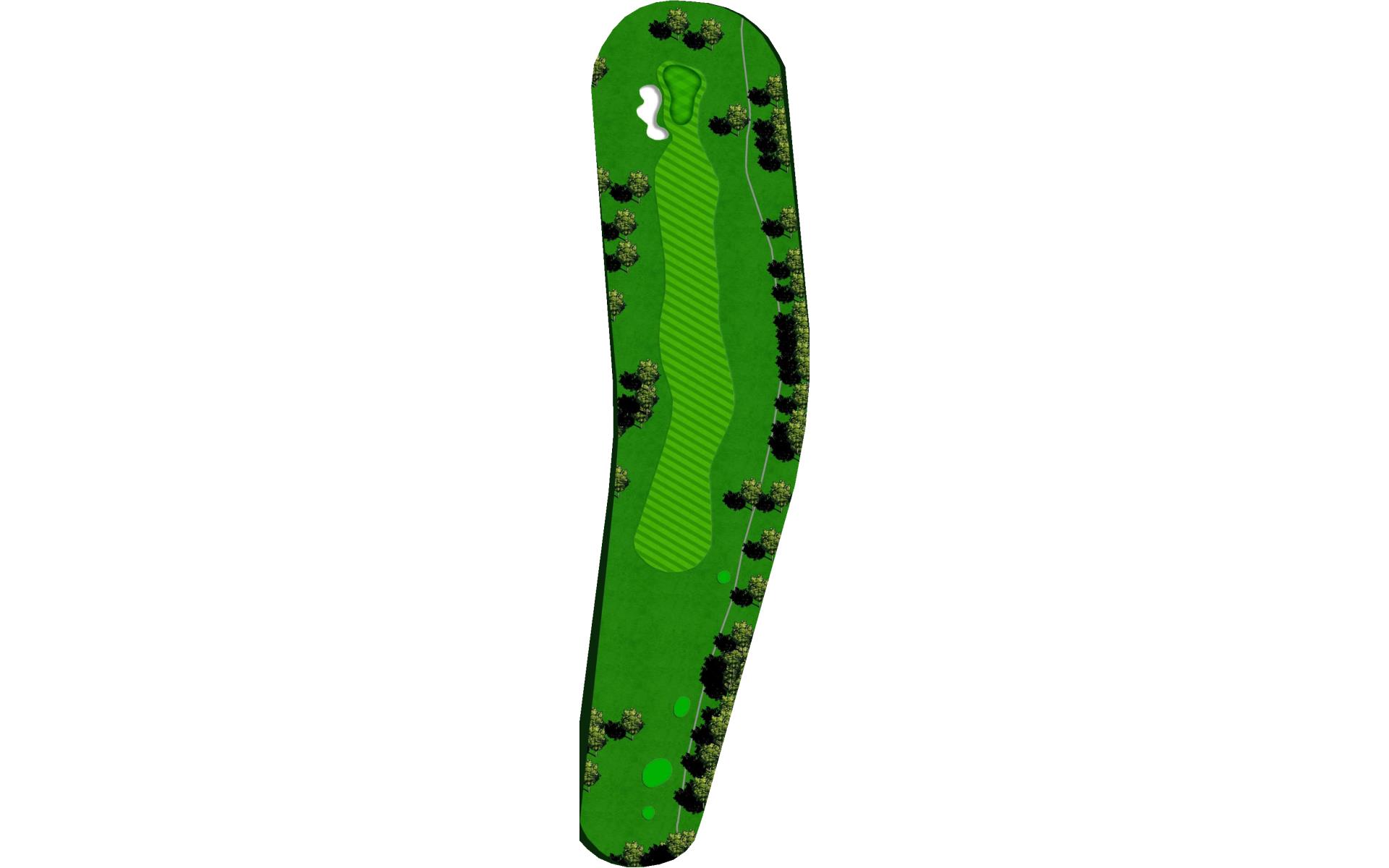 The ultimate risk-reward par 4. Longer players can reach the green with a tee shot that lands just short and hops on. However there is Bunkers running down the left side of the hole and hazard running down the right. With whatever decision you go with make sure to hit your second shot on the correct side of the green as this is a very wide but shallow green.