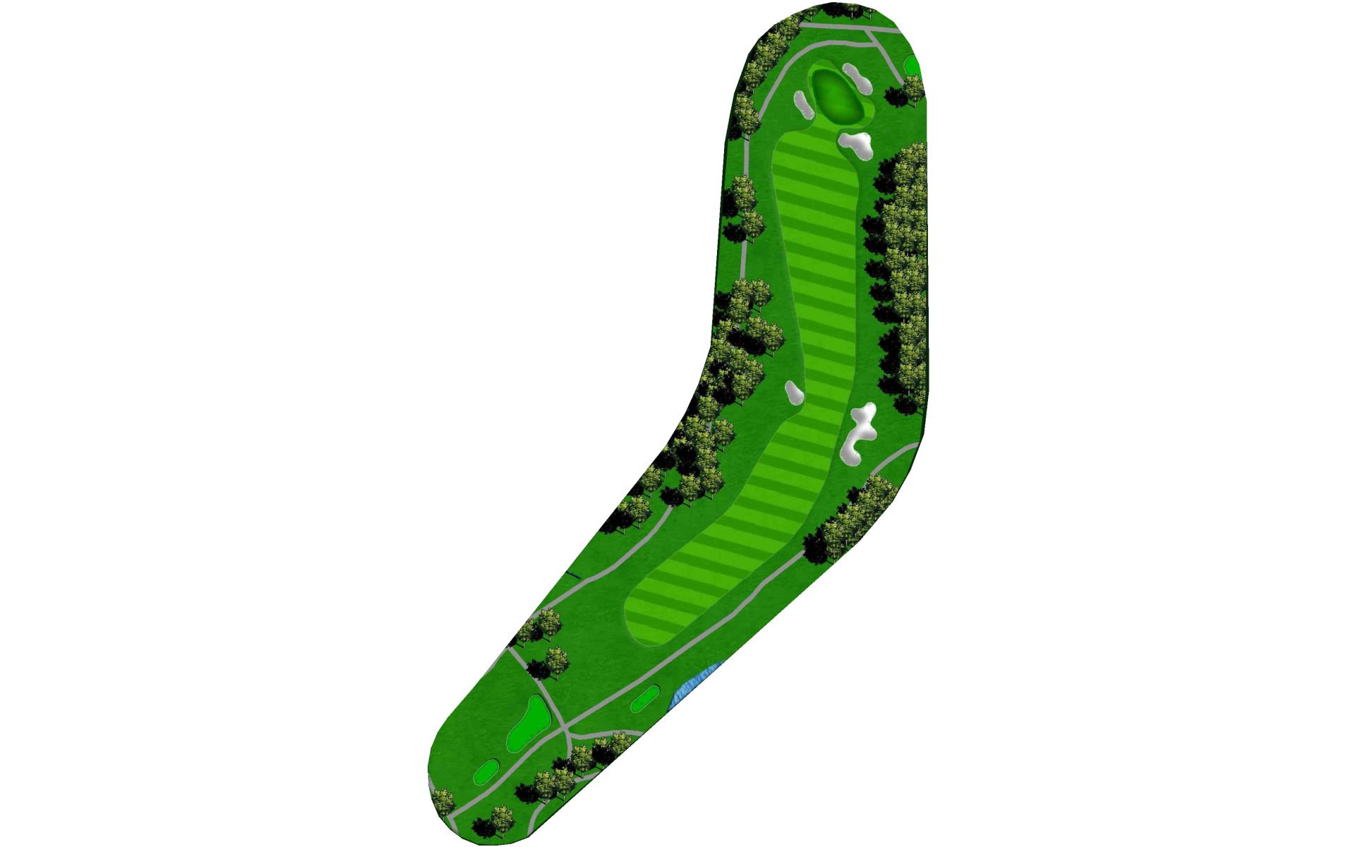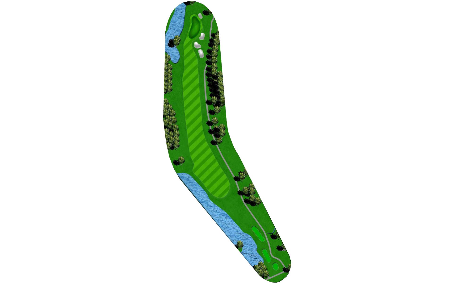 Par 4 with trees that narrow the fairway right where most golfers would land their tee shots. The hole runs straight though and once in the fairway a straightforward approach awaits.