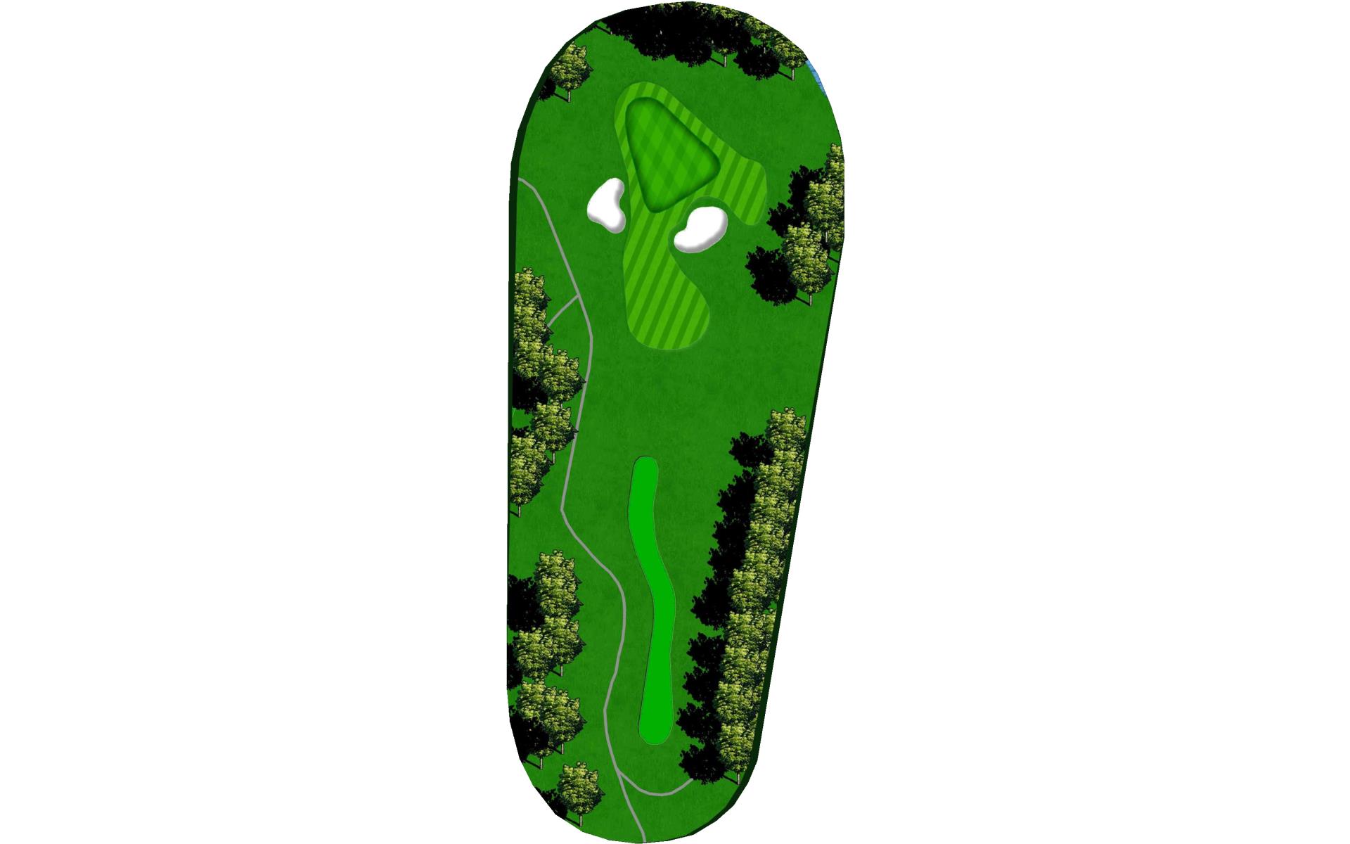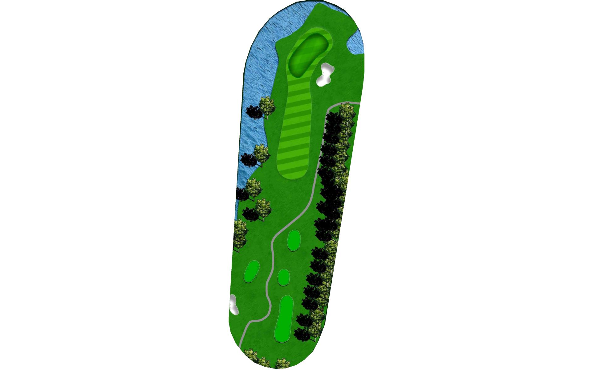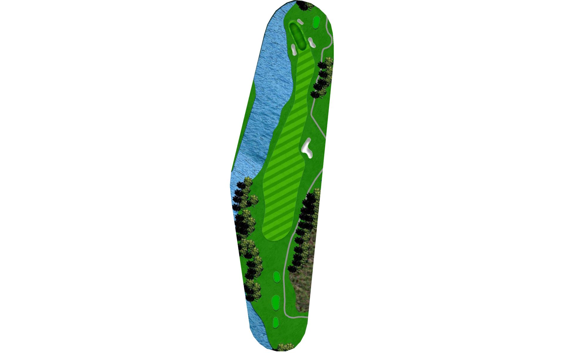 The first Par 3 with a deep green that has some tricky slopes. Do not leave yourself a downhill put here.