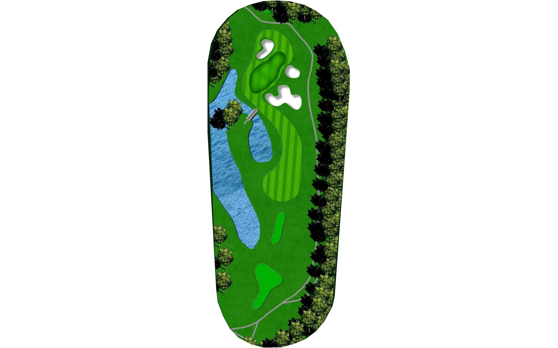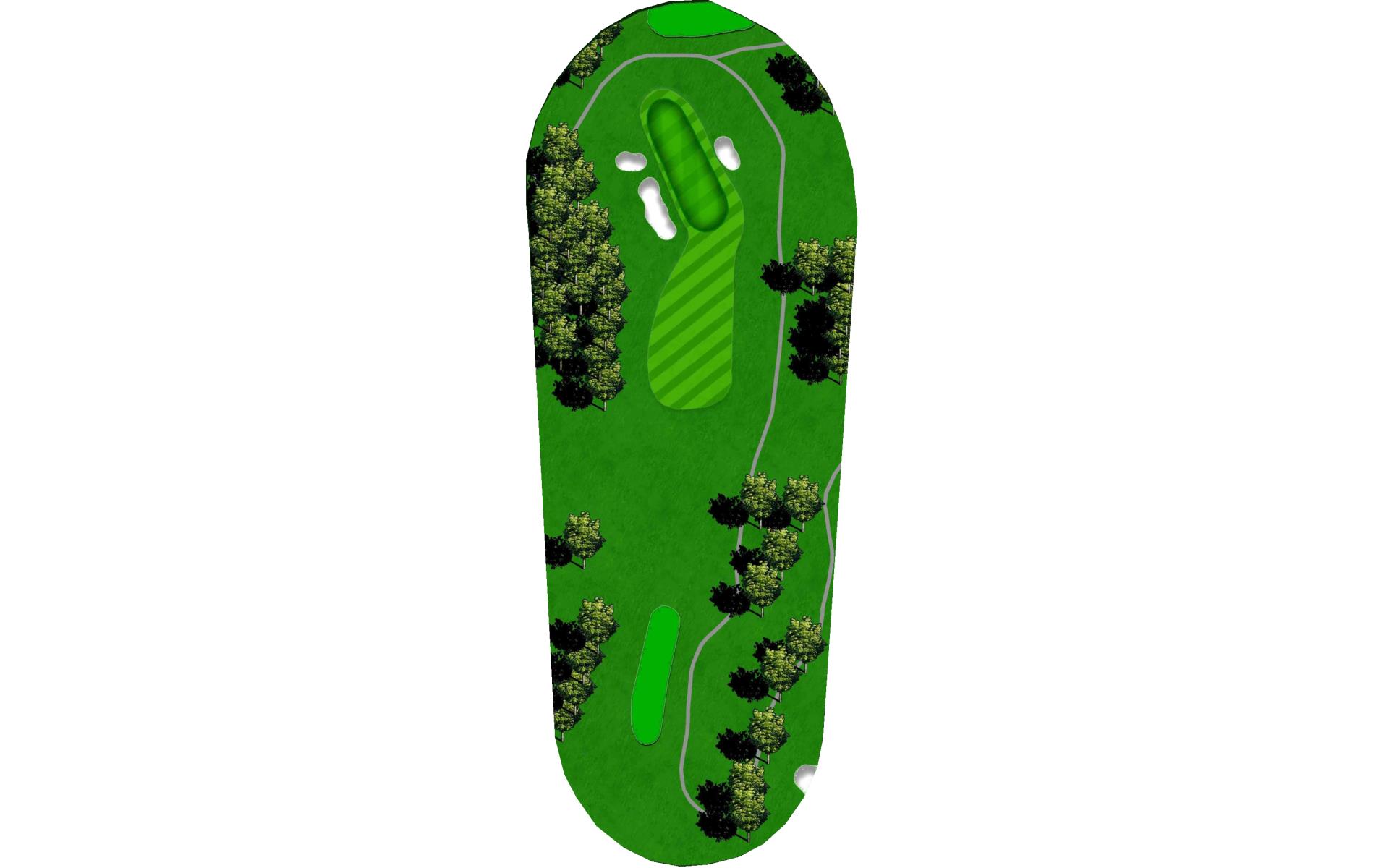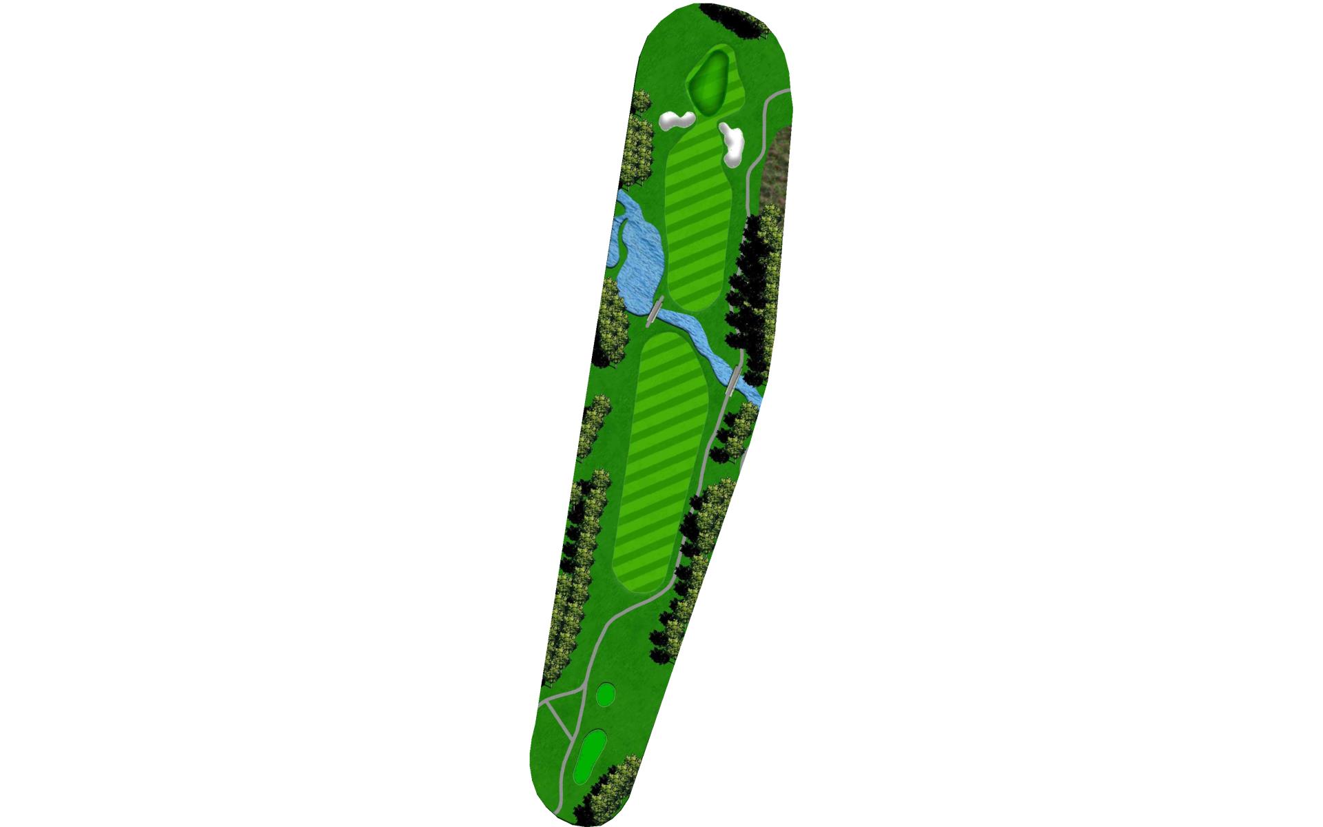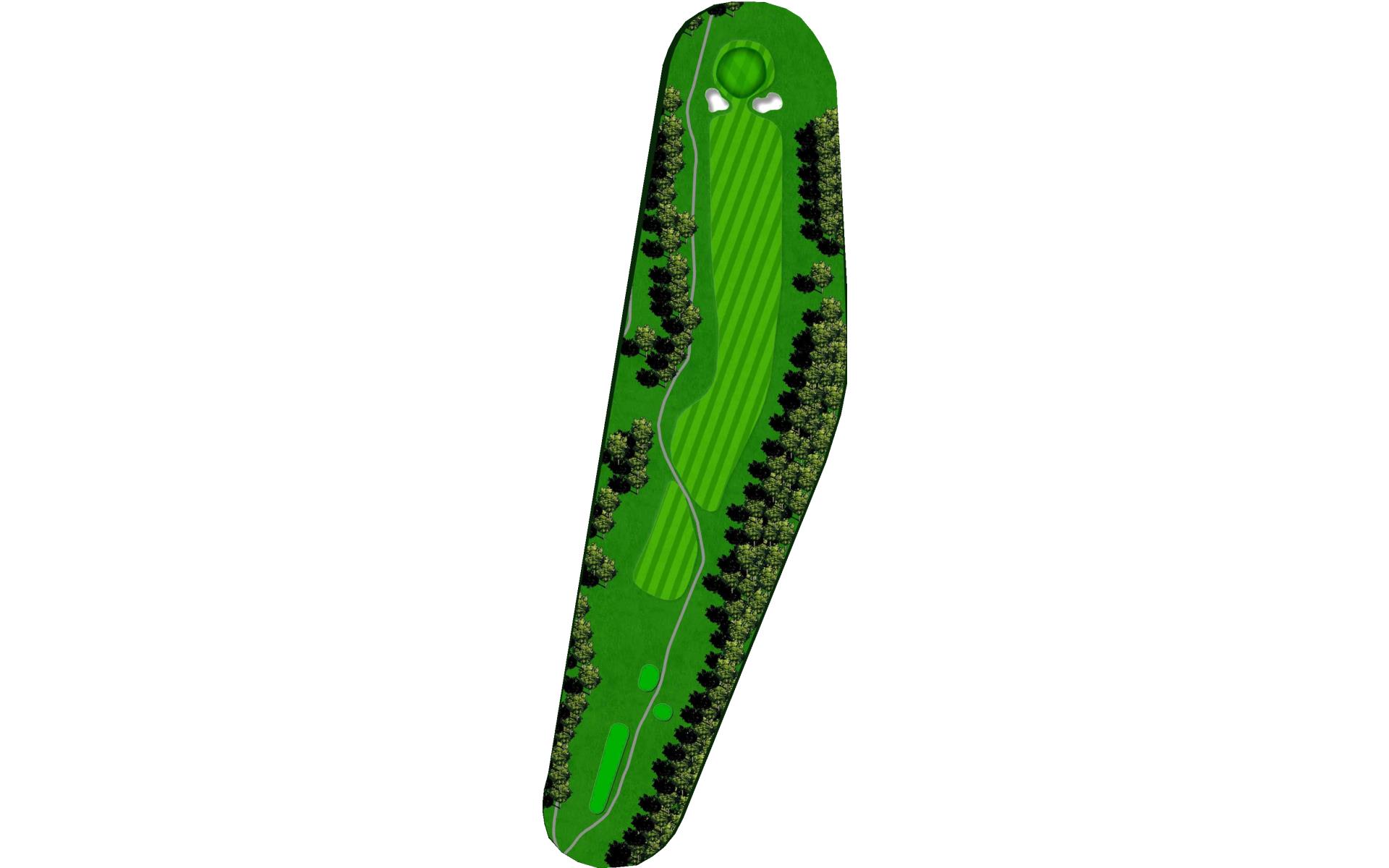 The first Par 3 with a deep green that has some tricky slopes. Do not leave yourself a downhill put here.